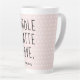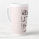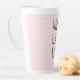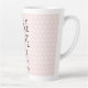 Celebra el amor y la amistad con esta taza de café latte El día de San Valentín, con el texto 'Amor latte entero' en escritura negra con fondo rosa pastel adornado con un patrón de corazones pequeños bonitos. Personaliza este sincero regalo con tu nombre! Diseñado exclusivamente para usted por Happy Dolphin Studio.