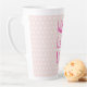 Celebra el amor y la amistad con esta taza de café latte El día de San Valentín, con el texto 'Amor latte entero' en escritura rosa caliente con fondo rosa pastel adornado con un patrón de corazoncitos bonitos. Personaliza este sincero regalo con tu nombre! Diseñado exclusivamente para usted por Happy Dolphin Studio.