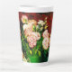 Latte Mug con la pintura al óleo de Vincent van Gogh Bowl con peoneses y Rosas (1886). Hermosas peonías y rosas rosas y blancas se sientan en un jarrón verde sobre un fondo rojo. Un regalo maravilloso para los aficionados al post-impresionismo y al arte holandés.