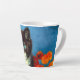 ¡Latte Mug con un hermoso gato Van Gogh tuxedo! Este pequeño gatito se encuentra junto a una cesta de flores naranjas sobre una mesa roja. ¡Un gran regalo para los amantes del gato y para los coleccionistas holandeses de arte!