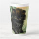 ¡Latte Mug con un gatito negro adorable! El gatito de ojos verdes se sienta en una manta con una flor rosa. ¡Un bonito regalo para los amantes del gato y del arte victoriano!