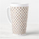 The clean white porcelain surface is adorned with subtle, yet striking squares in complementary brown and beige hues, offering a timeless elegance that enhances both casual and formal dining experiences. This latte mug serves as both a functional piece and a statement of refined taste.