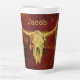 Calavera de toro occidental de campo vaquero de textura rústica de grunge patrón café de latte blanco taza. Decoración de cocina antigua de estilo rústico marrón vintage. Guay, diseño moderno y de moda para animales de granja. Personalizar tu nombre. Derechos de imagen de Marg Seregelyi Photography.