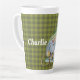 La taza con temática invernal / navideña presenta un ilustracion acuarela de unos gnomos adorables que duermen sobre un fondo de manto de gingham verde oscuro. Personalizar con texto blanco de personalizable