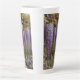 En un jardín, el enrejado cuelga una bella glicinia con mariposas en esta escena del jardín que trae tranquilidad y belleza al día.