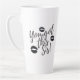 A clean, modern coffee mug featuring a minimalist black and white design.