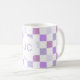 Monograma Masa de café simple y malva cruzado muestra un audaz y elegante patrón de tablero de ajedrez en tonos violeta y lavanda. El diseño geométrico clásico, combinado con un monograma personalizado, le aporta un toque de moda moderno a su rutina de café. Perfecto para el uso diario o como un regalo de cumpleaños para ella, esta taza mezcla el estilo preppy con la elegancia atemporal, lo que lo convierte en una adición divertida y única a cualquier cocina. 🦋 Puede personalizar fácilmente el producto añadiendo sus iniciales para que sea completamente único. También puede cambiar el color de fondo y el tipo de letra a su gusto abriendo "Personalizar esta plantilla" > "Editar usando la herramienta de diseño".