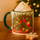 Esta taza festiva con tema navideño presenta un arreglo navideño con un lazo rojo y acentos de cuadros escoceses. Aunque se muestra con un asa verde, hay varias opciones de color disponibles para personalizar esta taza de café a su gusto.