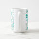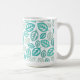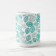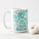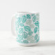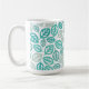 La taza de café de cerámica se muestra con hojas de color verde azulado/acuático de bonito. Personalizar este artículo o compra tal cual. Imagen de stock