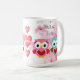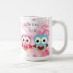Pintura original de dos lindas lechuzas, una rosa para un chica, la otra azul para un niño y acuarela floral color rosa flor de fondo. "Te amo con búho mi corazón" y citas de "búho siempre te ama". También puede personalizarlo con un nombre o una expresión favorita propia. Clásico café de 15 onzas.