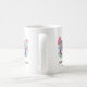Una taza con la imagen de un par de búhos enamorados sentados juntos en una rama de árbol. Rodeado de flores azules, verdes y rosas.