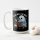Lectura nocturna con los muertos trae lectura nocturna a tu taza matutina. Un fantasma suave y una mano esquelética comparten una página tranquila como vapor de té y una vela resplandece. Los colores cálidos y los detalles suaves hacen de esto un favorito para los lectores de terror que aman los rituales acogedores. Para las vibes de los estagramas y las estanterías de Halloween.