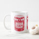 Perfecto para amantes de los libros - Taza de café 'Leer es mi mermelada' con ilustración de mermelada de fresa, lazo de tarro de mermelada y texto escrito a mano.