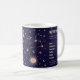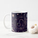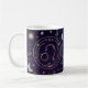 León horoscopio diseño de signos astrológicos zodiac con estrellas de estilo hológrafo lunas planetas de sol sobre un fondo morado azul profundo. Un diseño único que envuelve toda la taza incluye nombre de zodiaco, símbolo, constelación y datos nutricionales divertidos sobre el signo zodiaco de Leo el León. Un regalo divertido para alguien nacido entre el 23 de julio y el 22 de agosto bajo el signo de fuego de Leo.