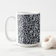 Esta taza de café de cerámica se muestra con una huella de leopardo azul animal. Personalizar este artículo o compra como se muestra.