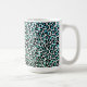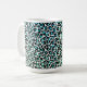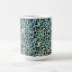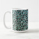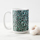 Esta taza de café de cerámica se muestra con una impresión de leopardo de color verde azulado. Personalizar este artículo o compra como se muestra.