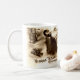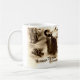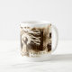 El tazón de café de aspecto vintage muestra el ilustracion utilizado por Nikola Tesla como membrete de su empresa. Tono sepia