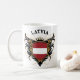 Diseño fresco del escudo con la bandera nacional de los colores y del subtítulo de Letonia: Letonia. Gran regalo letón del orgullo.