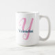 Esta taza blanca presenta un adorable monograma rosa "Y" en un guión elegante, con un nombre de marina de personalizable para un toque personalizado. Un regalo reflexivo para cualquiera cuyo nombre comience con Y, perfecto para cumpleaños, vacaciones o como una dulce sorpresa. Mira la colección de Monogramas de Guión Rosa para encontrar cada letra.