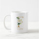 Taza De Café Letra F dorada de monograma | Floral Rosa Blanco V
