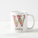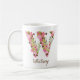 Esta encantadora taza de café personalizada incluye letra floral W y personalizada con su nombre en escritura caligráfica, o crea un regalo único para sus seres queridos.