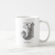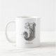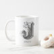 tazón de café blanco personalizable con la letra J en una tipografía única de color gris oscuro. Agregue su nombre utilizando la característica de personalización.