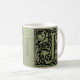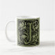 Letra encantadora J monograma inicial tipografía de estilo caligrafía tipografía primera en color verde azulado sobre negro- revestimiento de libro verde aguacate con hojas de Ginkgo blanco biloba. Use la plantilla para personalizar con su nombre o apellido u otro mensaje en letra negra.