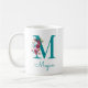Este bonito tazón de agua floral verde azulado y rosa con la letra M y su nombre sería perfecto para tomar el café de la mañana o el té de la tarde. ¡Sería un gran regalo para cualquiera que conozcas y amas! ¡Es muy fácil hacer el tuyo propio! Simplemente seleccione Personalizar esta plantilla y escriba su nombre inicial. En segundos verás tu magnífica y única taza!