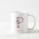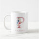 Letra monograma P Watercolor Floral Café Mug Una taza de café floral personalizada con un nombre y una letra monograma rosada subió "P", y con un follaje decorativo de acuarela y flores. Puede personalizar fácilmente con su nombre. ¡Haría un regalo encantador para sus seres queridos!