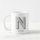 tazón de café blanco personalizable con la letra N en una tipografía única de color gris oscuro. Agregue su nombre utilizando la característica de personalización.