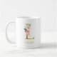 Taza De Café Letra oro monograma L | Verde blanco rosado floral