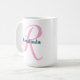 Esta taza blanca de cerámica presenta un hermoso monograma rosa "R" en escritura sofisticada, junto con un nombre editable por la marina para un toque personalizado. Un regalo encantador y significativo para alguien cuyo nombre empieza con R, perfecto para cumpleaños, vacaciones o cualquier ocasión especial. Navegue por la colección de Monogramas de Guión Rosa para completar su juego.