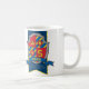 Nombre de Siraaj que significa "escudo azul" de los niños. Caballeros de la corona real gallega estilo escudo escudo letra monograma S nombre de arte mug perfecto para niños y adolescentes en tonos rojos, azules, grises y amarillos. Personaliza con tu propio nombre empezando por el significado de S y nombre o un mensaje o sujeto para un toque personalizado. Lee Siraaj Luminosa luz brillante. Curioso, único y original. Otros nombres disponibles en los tazas y otros productos que coincidan. Dibujo único de escudo de estilo real, con cabeza de león, corona, estrella y monograma inicial S, arte gráfico y diseño de Sarah Trett www.sarahtrett.com para www.mylittleeden.com