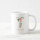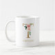 Taza De Café Letra T dorada monograma | Floral Rosa Blanco Verd