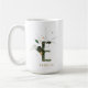 Hojas tropicales personalizadas, letra "E" monograma con falso acento dorado tazón de café. Haga clic en el vínculo Personalizar para cambiar la fuente, el tamaño y el color. >>> Consulte toda la colección (enlace a continuación) https://www.zazzle.com/collections/tropical_foliage_monogram_tote_bags_coffee_mugs-119635332640853209