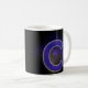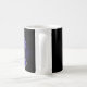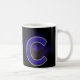 Mok met de letter C. (bijvoorbeeld je initiaal) Leuk als je naam met de C begint of die van een ander. Achter de letter is een raster en mysterieuze wolken met een licht die erop schijnt. De letter C is gevuld met een plaid patroon en een grijze rand erom heen. kleuren blauw, paars, geel en zwart.