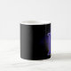 Mok met de letter F. (bijvoorbeeld je initiaal) Leuk als je naam met de F begint of die van een ander. Achter de letter is een raster en mysterieuze wolken met een licht die erop schijnt. De letter F is gevuld met een plaid patroon en een grijze rand erom heen. kleuren blauw, paars, geel en zwart.