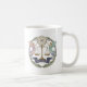 "Celebrate balance, harmony, and justice with this exquisite Libra zodiac coffee mug. The design features a golden scale held by two graceful winged angels, surrounded by a lush laurel wreath and a vintage 'Libra' ribbon. With its soft pastel tones and classical art style, this mug is an ideal gift for those born under the sign of the scales (September - October) or anyone who appreciates celestial elegance and aesthetic symmetry."