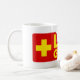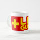 Mugre salvavidas. Vibrante amarillo y rojo logo del salvavidas taza de té y café.