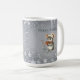 Un lindo ratón gris vestido para el invierno con un gorro y una bufanda sostiene bayas y te desea “Felices Fiestas”. Está rodeado de un diseño de copos de nieve blancos. El saludo se puede cambiar fácilmente a lo que prefieras.