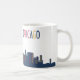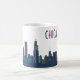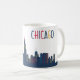 Ilustracion moderno y plano con un horizonte de Chicago con siluetas de sus edificios clásicos y monumentos culturales.