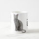 Muestra el amor por tu amigo felino ruso azul con esta elegante taza de gato color agua. Personaliza con tu propio texto.