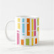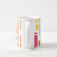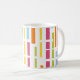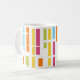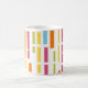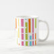 Esta taza tiene un diseño moderno de mediados de siglo de líneas verticales de colores con líneas horizontales blancas.