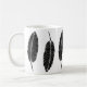 Taza De Café Linocut de plumas rusticas en blanco y negro
