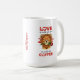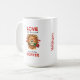 Wake up to a blend of romance and humor with this personalized lion coffee mug. Featuring a cute lion in heart-shaped glasses holding a rose, the design playfully reads, "Love is in the air and it smells like coffee." Custom-printed with the name William (or your choice of name), this high-quality ceramic mug makes an ideal Valentine’s Day gift or anniversary surprise for the coffee lover in your life.
