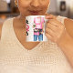Esta fabulosa taza de café muestra a un artista de maquillaje con la imagen de texto "Lipstick and Lattes". Añade tu nombre para un toque personal. El maquillador puede cambiarse haciendo clic en "Personalizar" y "Editar usando la herramienta de diseño".