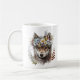 Un diseño de acuarela de bonito con un lobo rodeado de flores de colores.
