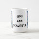 Lobos con la Cita "Eres hermosa" Crea tu propia foto favorita o dicho gracioso es una buena manera de empezar el día. Usa nuestra taza blanca para mostrar tu creatividad. Tiene una manecilla grande fácil de sujetar y tiene tamaños de 11 onzas y 15 onzas. Apta para microondas y lavavajillas. ¡Hace un gran regalo! Para crear sus propios Mugs, haga clic aquí; http://www.zazzle.com/design_your_own_mug-168684744298182741