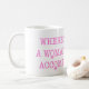 En un texto rosado se lee: "Donde hay una mujer, hay logro". Las O de la cita son en realidad el signo de la mujer.
