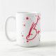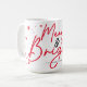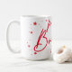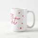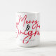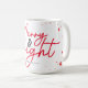 Este elegante y moderno Navidad Mug cuenta con un elegante y moderno guión de caligrafía en estrellas rojas y nieve. Agregue el texto preimpreso al interior o elimine el texto de ejemplo para mantenerlo en blanco para la nota manuscrita.